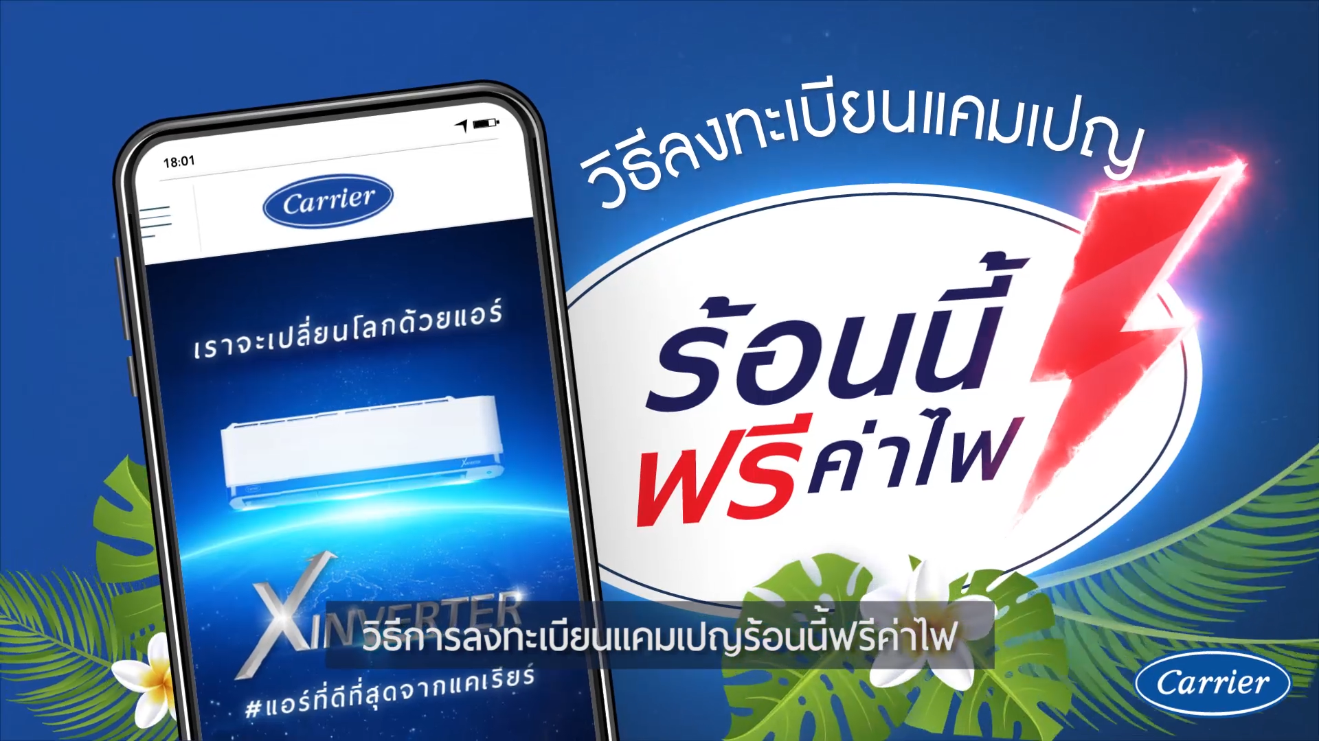 Carrier ลงทะเบียนร้อนนี้ฟรีค่าไฟ